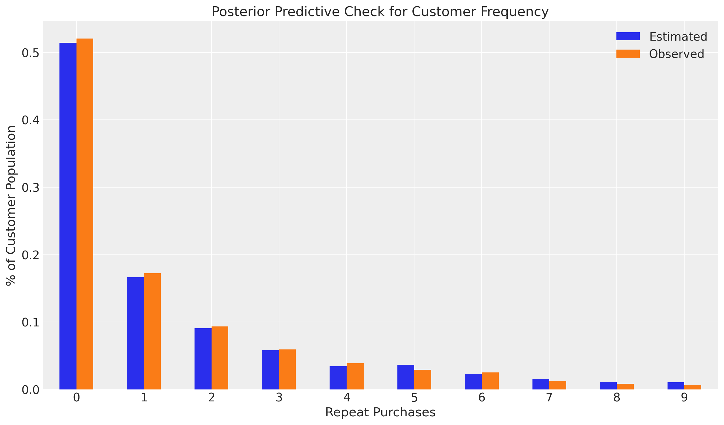 In this notebook we will use Bayesian inference to fit a Pareto/NBD model in PyMC-Marketing, and compare results with the frequentist lifetimes